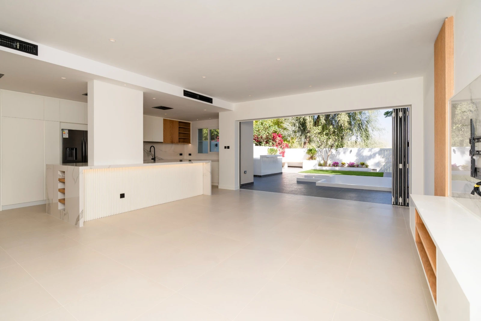 A beautifully upgraded property in the highly sought-after Arabian Ranches community, located in the heart of Dubai. The modern design materials emphasize simplicity, clean lines, and a sense of openness. The palette is typically neutral and uncluttered, focusing on function and innovative use of industrial and natural elements. Surfaces are smooth and continuous, with an emphasis on natural light and open space. The interplay of glass, metal, and stone creates a streamlined, contemporary aesthetic that feels both functional and quietly sophisticated. The ground floor comprises of an open-plan living and dining area that morphs into a modern kitchen with a breakfast bar. A versatile downstairs room, complete with an adjacent full shower, can be used as a guest bedroom, study, or maid’s room. Upstairs, the master suite features a private balcony overlooking the garden and a contemporary en-suite bathroom. The additional two bedrooms share upgraded bathroom facilities, offering a comfortable, family-friendly layout.