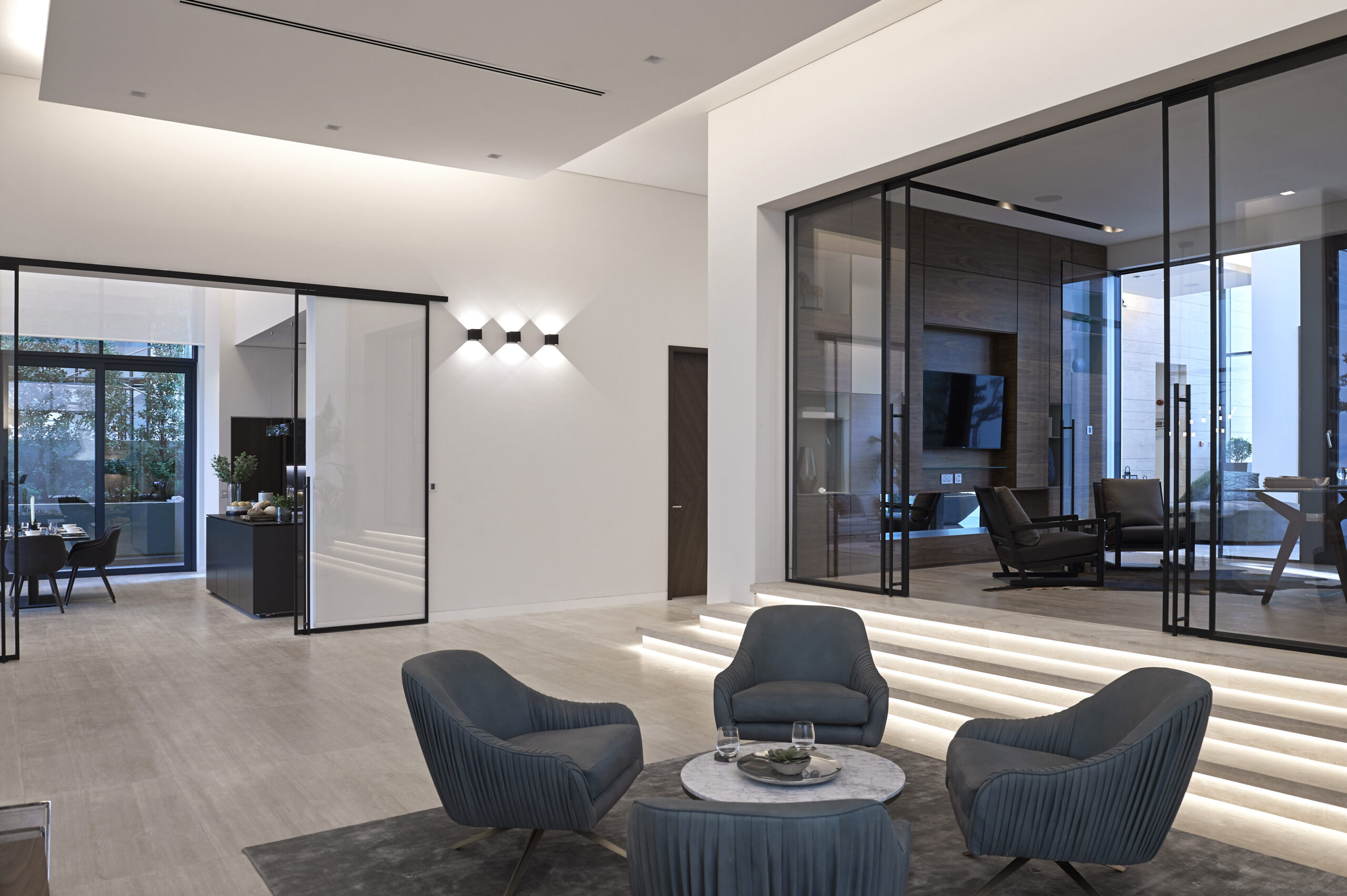Hillside is a limited and exclusive collection of contemporary designed villas constructed in a private gated community overlooking the prestigious Earth course at Jumeirah Golf Estates. With more than 18,000 square feet of living space, each six-bedroom villa has been designed with meticulous attention to detail and constructed to one of the highest standards in the world. Each villa features three spacious floors, including fully air-conditioned, naturally lit basement 5 car parking area and second floor penthouse with stunning views of the city and golf course. All floors are connected by means of a passenger, as well as service lift. Facilities include basement entertainment areas with home theater, fully functional ‘show kitchen’ with back of house ‘dirty kitchen’ and upper floor pantries, lounge, dining and study area.